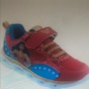 BNWOT Sz US 9 Wonderwoman Kids Toddler Red Blue Light Up Sneakers Shoes Velcro