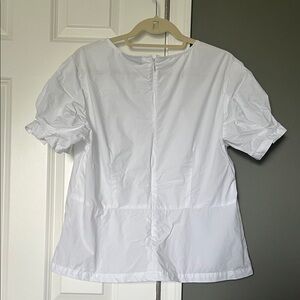 White Cotton Pintuck Blouse Size XL Short Sleeve Top Workwear Classic