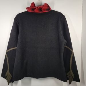 CoVelo Black Wool Embroidered Poppy Floral Lagenlook Zip Cardigan Sweater L NWT