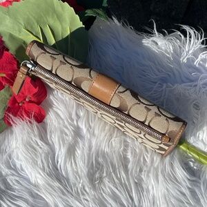 Coach Long Envelope Wallet Canvas Khaki Brown Tan Leather Inside