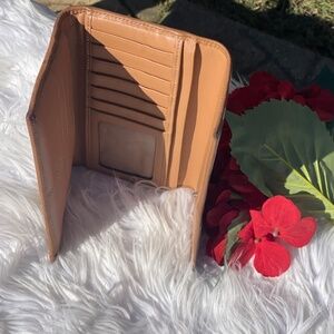 This wallet is in great condition. It shows very few signs of use no spots or stains noted, no rips, or tears seen.