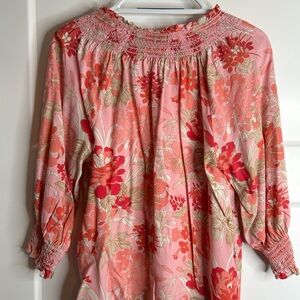 Talbots Women’s Size Large V Neck Blouse Pink Floral Cottagecore Coastal 4710