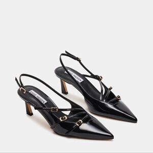 Steve Madden Liana Glossy Black Multi-Strap Heels