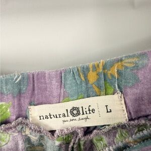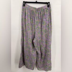 Natural Life Womens Wide Leg Linen Blend Palazzo Pant Boho Floral Hippie Large