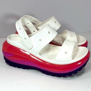 Crocs Classic Mega Crush Women 11/Men 9 Platform Sandals White Pink Purple Rare