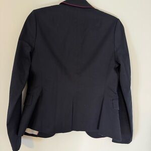 Chic and polished Banana Republic women’s blazer in a classic navy with eye-catching pink piping along the lapel and hem.