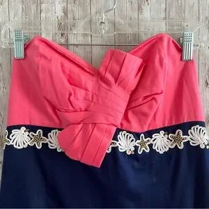 Lilly Pulitzer Krissa Strapless Pink and Navy Dress New Size 10