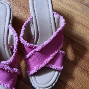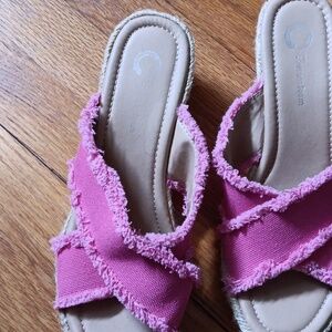Journee Collection ShanniRaw Edge Comfort Foam Canvas Wedge Sandal ■ Size 8