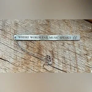 Silver Music Bookmark, “Where Words Fail Music Speaks”