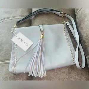 New Blue-Gray Marie - Grommet Detail Fold Over Tassel - Vegan Leather Crossbody