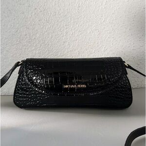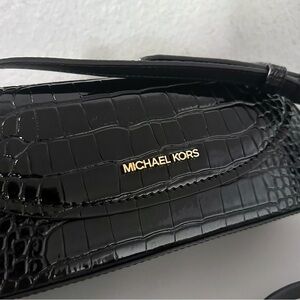 NWT MICHAEL MICHAEL KORS KATYA MEDIUM FLAP CROSSBODY CROC-EMBOSSED IN BLACK