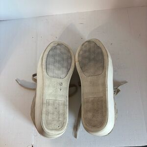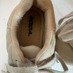 Color: The sneakers are beige or tan.