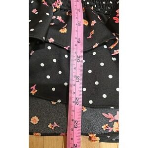NWOT For love & Lemons black pink floral ruffle hem Camellia Mini Dress Medium. Condition is Pre-owned - Excellent. Shipped with USPS Ground Advantage.