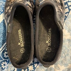Stylish Slogger clogs with paw print design. Perfect for outdoor activities. Gently used, but still in really good condition.