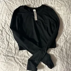 Chic black long sleeve top by ALO Yoga. Ideal for versatile styling.