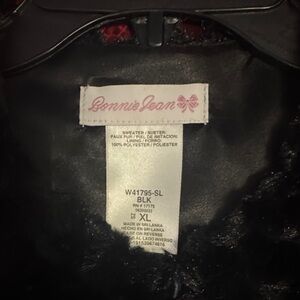 Stylish black faux fur jacket. Adds sophistication to any look.