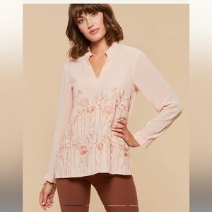 NWT Spartina 449 Nicolette Embroidered Tunic Top Large Blush Pink Floral V Neck