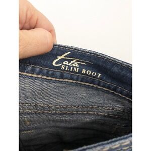 Mek Denim slim boot cut jeans in a dark wash. Crafted for a flattering silhouette, these jeans offer a comfortable stretch. Perfect for casual outings or a night out.