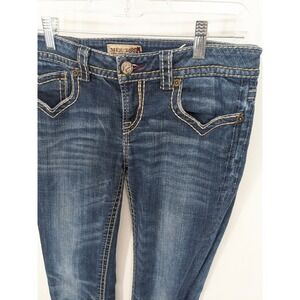 Mek Denim Slim Boot Jeans Women 29x36 Blue Stretch Dark Wash Embroidered Western