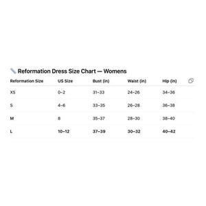 Please refer to the Reformation size chart shown in the photos and compare with your own measurements for best fit, as fit can vary by style.