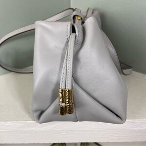 Ulla Johnson Remy Mini Leather Crossbody Clutch Purse Bag Grey Drawstring
