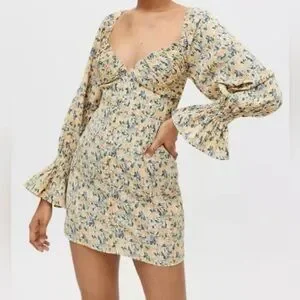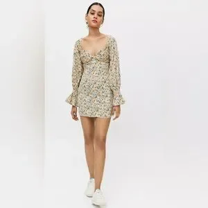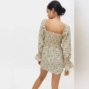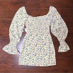KISS THE SKY Urban Outfitters Floral Bardot Mini Dress Boho Size Small NWT