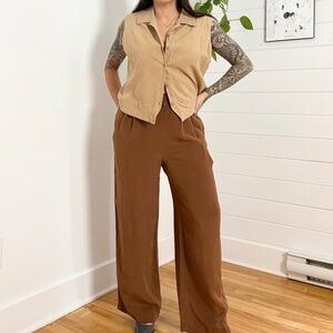 Y2K Tan buttoned front collared sleeveless shirt