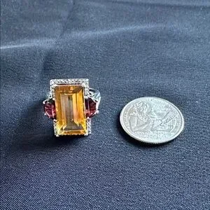 Citrine & garnet EUC ring. Emerald & fancy cut genuine gemstones in 925 sterling