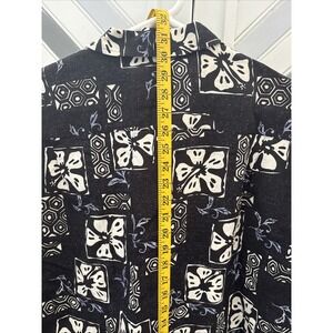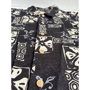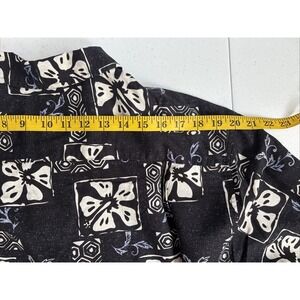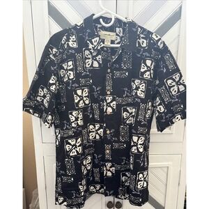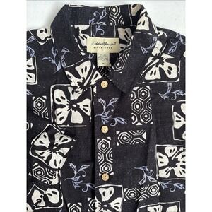 Eddie Bauer Men's M Black White Retro Linen Blend Tropical Hawaiian Short Sleeve