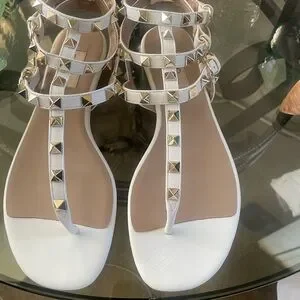Valentino Garavani White and Gold Studded Sandals