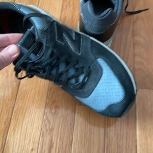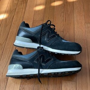 New Balance 574 Black/slate leather and suede sneakers