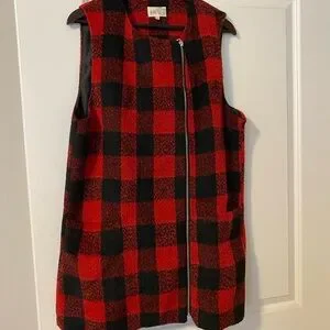 Stay stylish and warm with the Jolt Women's Plaid Vest. Featuring a bold red and black design, this vest is perfect for layering and adding a pop of color to your outfit. Can be worn as a dress also.