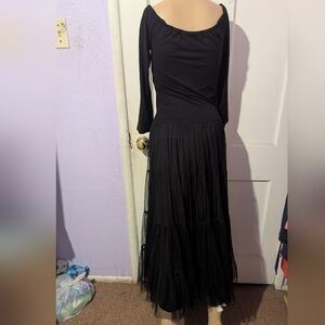 Chic black maxi dress with long sleeves. Perfect for formal occasions.