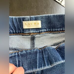 Laura Skinny Jeans Blue Denim White Floral Embroidery Size 12 Stretchy