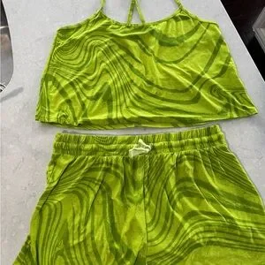 Chic tank and shorts set in lime green. Ideal for everyday comfort.