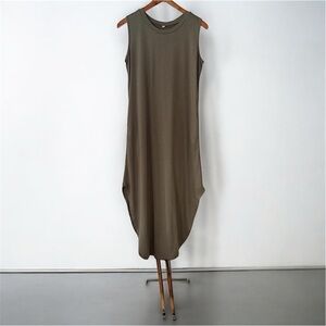 Elevate your wardrobe with this elegant sleeveless olive green maxi dress. Perfect for any occasion, this dress offers a comfortable and stylish fit.