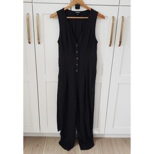 Express Jumpsuit Womens S Black Sleeveless Flare Leg Button Front Belted