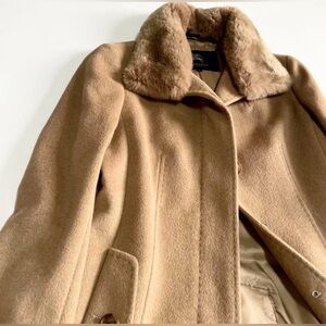 Burberry London Short Coat, crafted from soft angora blend with a luxurious rex rabbit fur collar. The fur is removable. Purchased in Burberry Japan.
