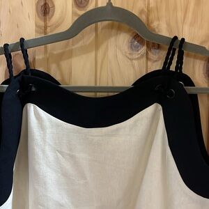 AUREUM Linen Scallop Hem Matching Short Set High-rise Natural & Black Small NWT