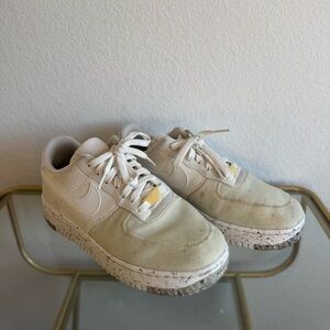 A modern take on the hoops icon, the Nike Air Force 1 Crater blends classic basketball style and sustainability with every shoe made from at least 20% recycled materials. The translucent textile on the toe reveals a vibrant blend of reclaimed materials giving each shoe a unique look, while Nike Grind rubber accents on the sole and a comfy Crater Foam midsole made from 11% recycled materials add a modern twist. Lace up and make an impact.