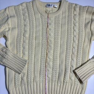 Beautiful vintage cable knit sweater, butter yellow. The last picture shows the colour the best.