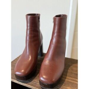 VANELI Valeke Women's Boots Brown Cognac Leather Square Toe Comfort 10 Luxury