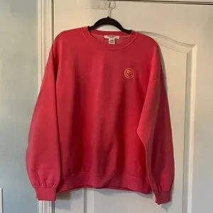 Project Social T Pink Oversized Sweatshirt With Yellow Happy Face Sz L/XL EUC