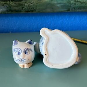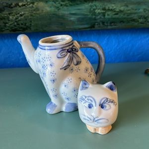 Vintage Blue and White ceramic Asian Cat Teapot Don’t you love that face. !