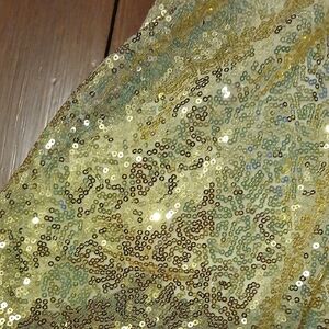 Shimmering gold sequin dress with spaghetti straps. Perfect for parties and special occasions.