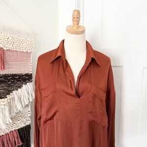 Free People Starry Dreams Satin Shirt Brown Sz M NWT