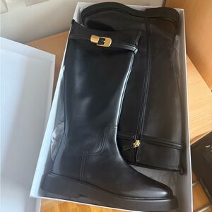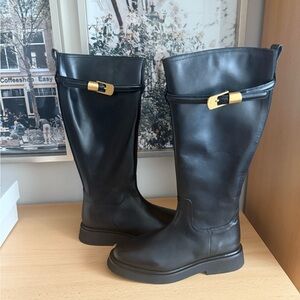 New With Tags Elegant black boots with a stylish gold buckle. Perfect for a chic look.