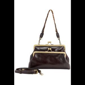 Patricia Nash Lucy Leather Double Frame Crossbody Chocolate Brass