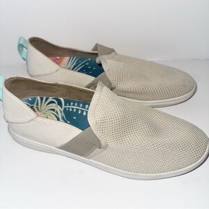 Olukai Hale’Iwa Women’s Casual Shoes Tapa/Silt Beige Slip-On Mesh Sneakers Sz 9