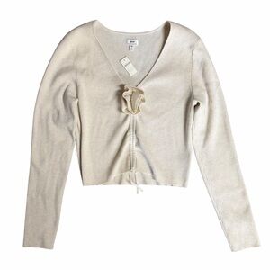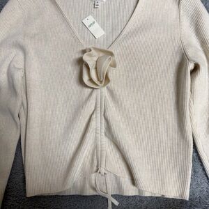 NEW Aerie Cropped Rosette Sweater Cream Size XL